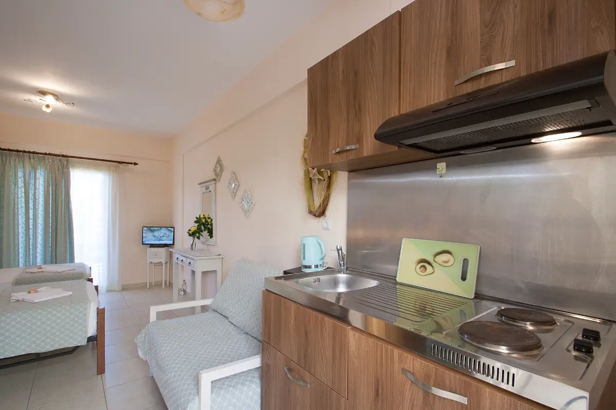 The Standard Studios at Syraina Studios & Rooms offers a balcony or terrace and sleeps up to 2 people. They come with either a twin or double bedroom and other amenities include a fridge, hairdryer, Wi-Fi, a TV, a shower, plus a safety deposit box.